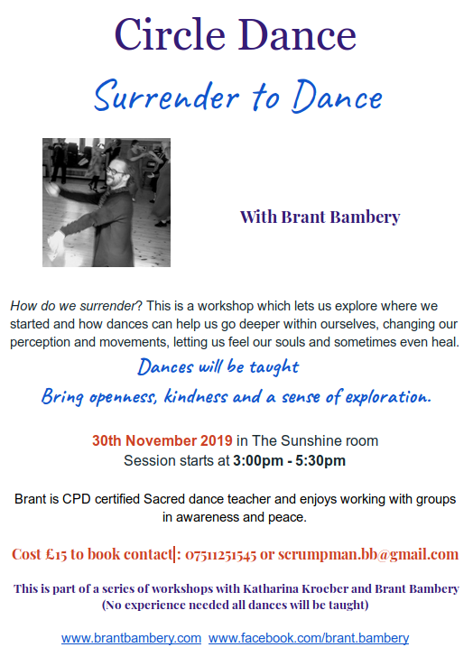 If you are interested in surrendering in dance then come along to my session on 30 November 2019 at the Sunshine Room Findhorn Park Scotland.