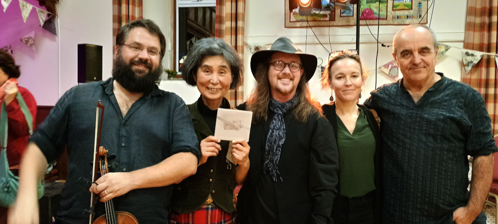 This past week, the Findhorn Bay Arts Festival filled the area with so many incredible events. Although I could only attend one workshop and concert, I chose to join the Breton band Gwaid. They taught us the traditional dances of their region, and we spent hours dancing to live music, both in the afternoon and into the evening. One of the highlights was dancing through the village hall kitchen through the backdoor and back with a band member playing a pipe instrument, a joyful and coordinated experience! I’ve included an image below, and I’m sure we’ll see more of this band in the future.